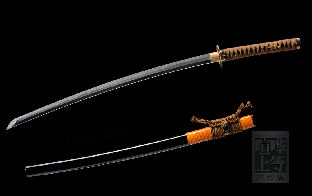 和 初T10钢覆土烧刃 淬反 真横手 上研高档铜装任选 藤木鞘日研技术研磨 晶体颗粒晶莹 全长104 刃长71 柄长26 元幅3.2 先幅2.4 元重0.75 先重0.45 反1.9(手工制品 存在误差)赠品:锦盒 刀架 刀袋图片摄于2016年,单反拍摄