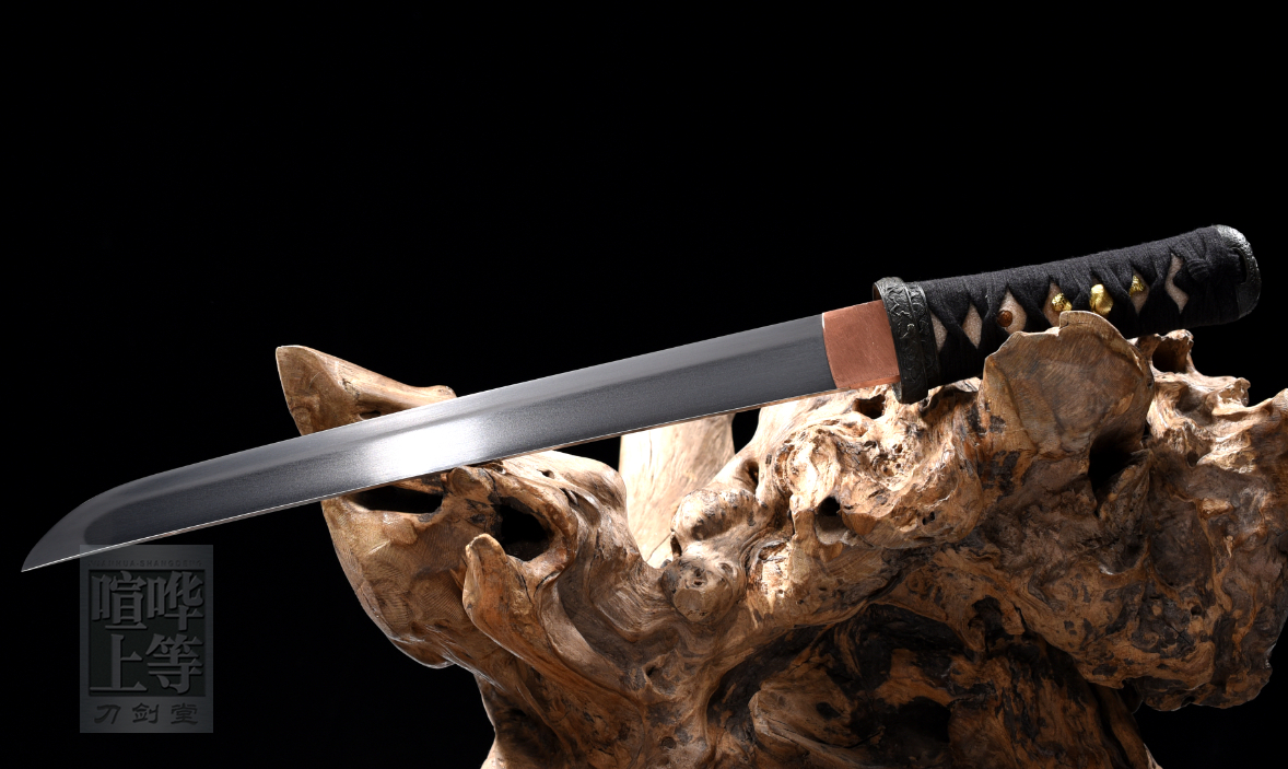 康 介 玉钢平造短刀自家熔炼玉钢 梨子地肌 覆土烧刃 国内顶级仕上研 铜装 发黑处理 大漆牛角鞘 紫铜簇 全长46.5 刃长31 柄长13 元幅2.8 先幅1.8 元重0.65 先重0.3 (手工制品 存在误差)赠品: 刀架 刀袋 刀盒图片摄于2018年,单反拍摄
