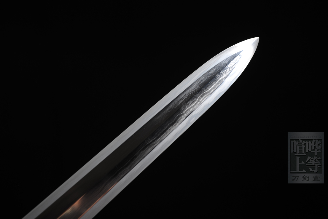 祥云汉剑铁装嵌银夹钢烧刃八面汉剑夹钢结构 覆土烧刃 上研 皮铁为自家熔炼11折(2的12次方,理论数值8192层)芯铁为T10肌理细腻 质地温润 剑身双抖!高档铁装手工嵌银 扁柄 指向性好全长81 刃长56 柄长21刃宽3.3 刃厚0.8(手工制品 存在误差)赠品:锦盒 刀架 刀袋图片摄于2016年,单反拍摄
