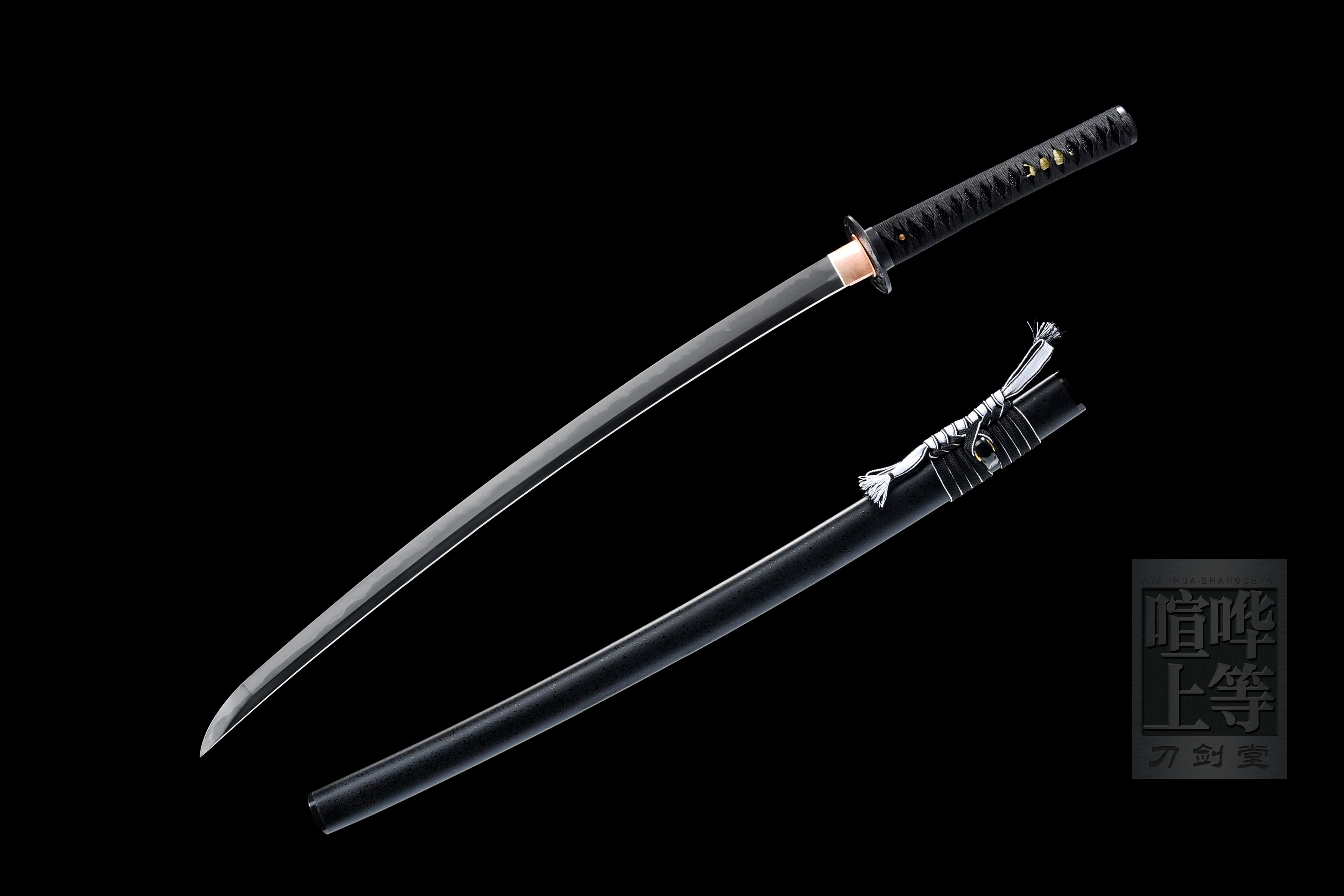 大永正宗(叁) 已售出自家熔炼一级玉钢(丸锻) 梨子地肌 国内顶级仕上研覆土烧刃 逆丁字刃 淬反 长切先真横手日本翻模装具(日本翻模类里任选)装具材质不锈钢 发黑处理 黄铜目贯三件牛角鞘 紫铜簇 紫铜切羽 双色下续全长104 刃长71 柄长26.5元幅3.2 先幅2.3 元重0.72 先重0.4 反2.0(手工制品 存在误差)赠品: 刀架 刀袋 保养工具图片摄于2019年,单反拍摄