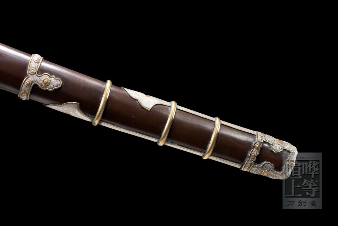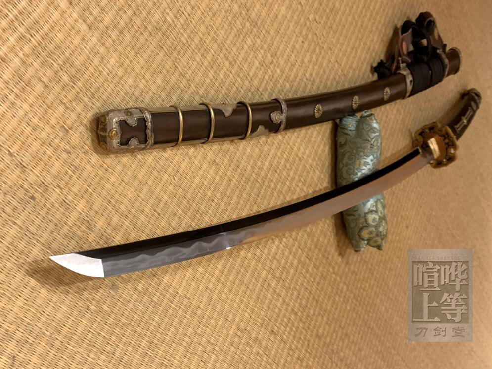 兵库锁太刀 三枚合结构 皮铁玉钢精锻 柾目肌 芯铁美标T10 镐造 覆土烧刃 淬反 真横手 国内顶级仕上研 有研标 整鞘整柄高档赤铜装(柄、鞘全金属) 黄铜兵库锁太刀装 鎏金鎏银 手工刀簇 紫铜切羽 平安时代刀姿 威武霸气 地肌细腻 质感强 超高性价比! 全长112 刃长72 柄长31 元幅3.2 先幅2.3 元重0.72 先重0.45 反2.3 (手工制品 存在误差) 赠品:刀盒 刀架 刀袋 保养工具 图片摄于2021年,单反拍摄 观赏视频:https://www.bilibili.com/video/BV1ZK4y1N7pZ?share_source=copy_web