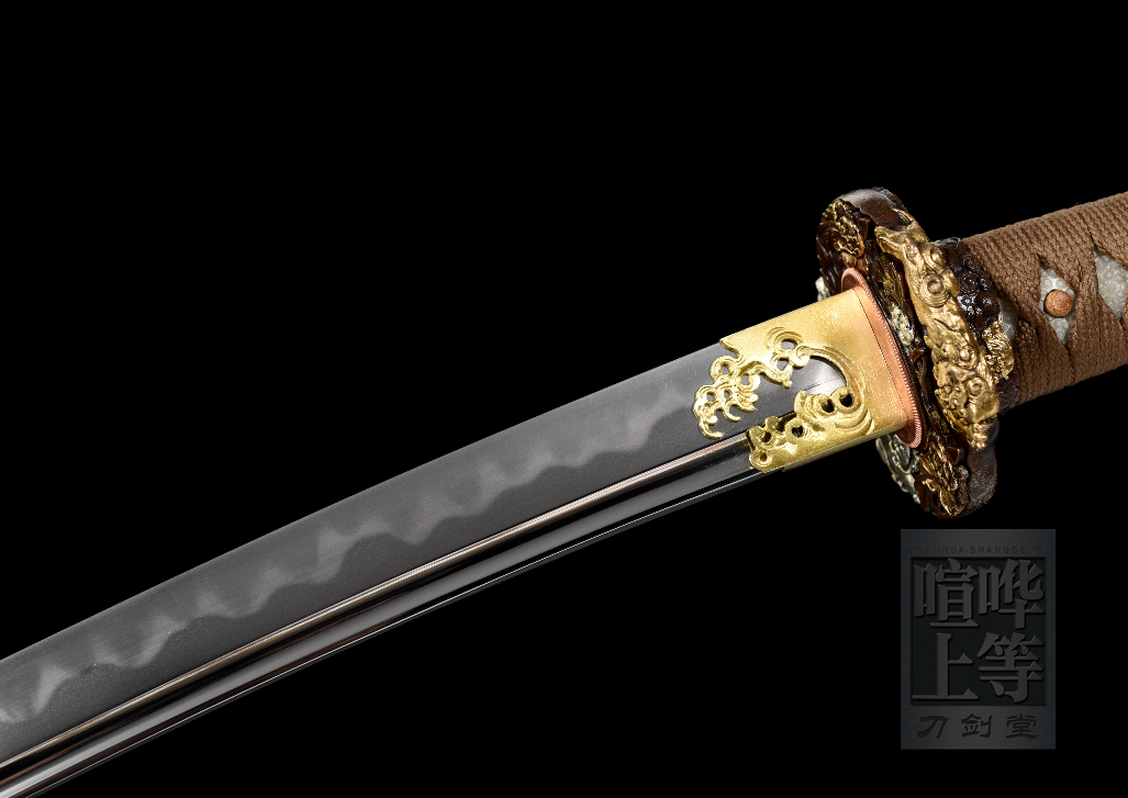 贞和兼光 玉钢丸锻太刀 足长丁子刃 镐造 覆土烧刃 淬反 真横手 逆刀态骚樋(樋贯穿整个刀茎) 国内顶级仕上研 有研标 高档赤铜太刀装 鎏金鎏银 精工海浪簇 紫铜切羽 柄反 菱纸柄 整鞘优质三连天星鱼皮(熟) 室町早期刀姿 威武霸气 地肌细腻 质感强 气口足 超高性价比! 全长105 刃长71.5 柄长27 元幅3.1 先幅2.26 元重0.71 先重0.36 反2.7 全重1.95KG 出鞘重1.25KG (手工制品 存在误差) 赠品:刀盒 刀架 刀袋 保养工具 图片摄于2021年,单反拍摄 观赏视频: https://www.bilibili.com/video/BV1MU4y1K7FR?share_source=copy_web